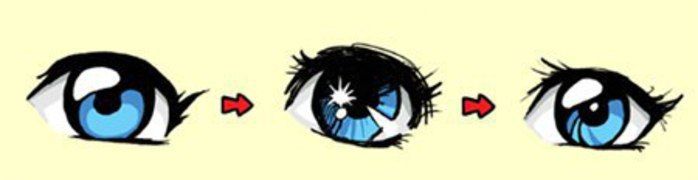 В данном случае ресницы почти не показаны — лишь те, что уходят в стороны.