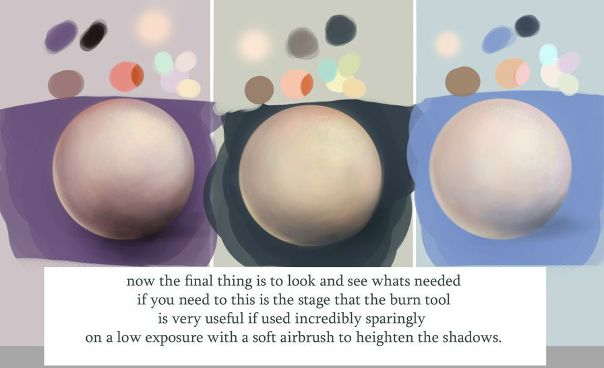 На менее гладких поверхностях блики более тусклые, шершавые поверхности рассеивают свет. Это надо помнить, прежде, чем накладывать блик.