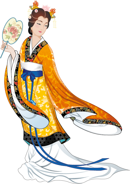 Желтый цвет был всегда цветом императора и его семьи. Прочая знать могла позволить себе носить ярко-красные костюмы-кимоно из дорогих шелковых тканей.