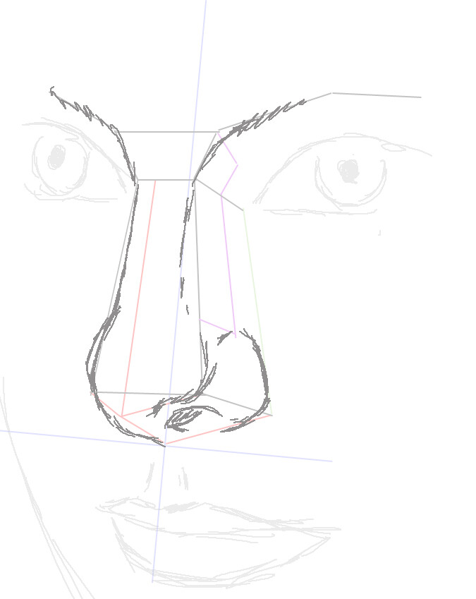 Поиск этих плоскостей и их сначала рисование поможет вам ввести значения, которые приведут к реалистичной иллюзии носа.