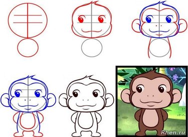 - Поэтапное рисование обезьяны для детей