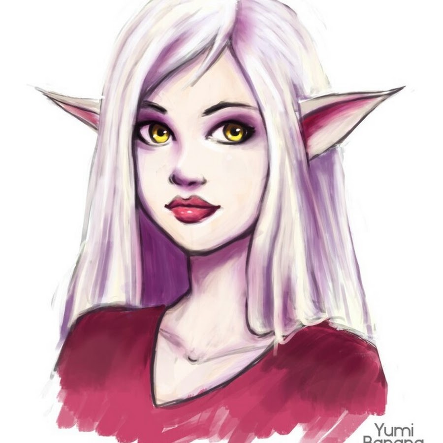 Начните с больших миндалевидных глаз, затем нарисуйте нос, линию рта, а затем брови. Выражение лица этого эльфа очень милое.