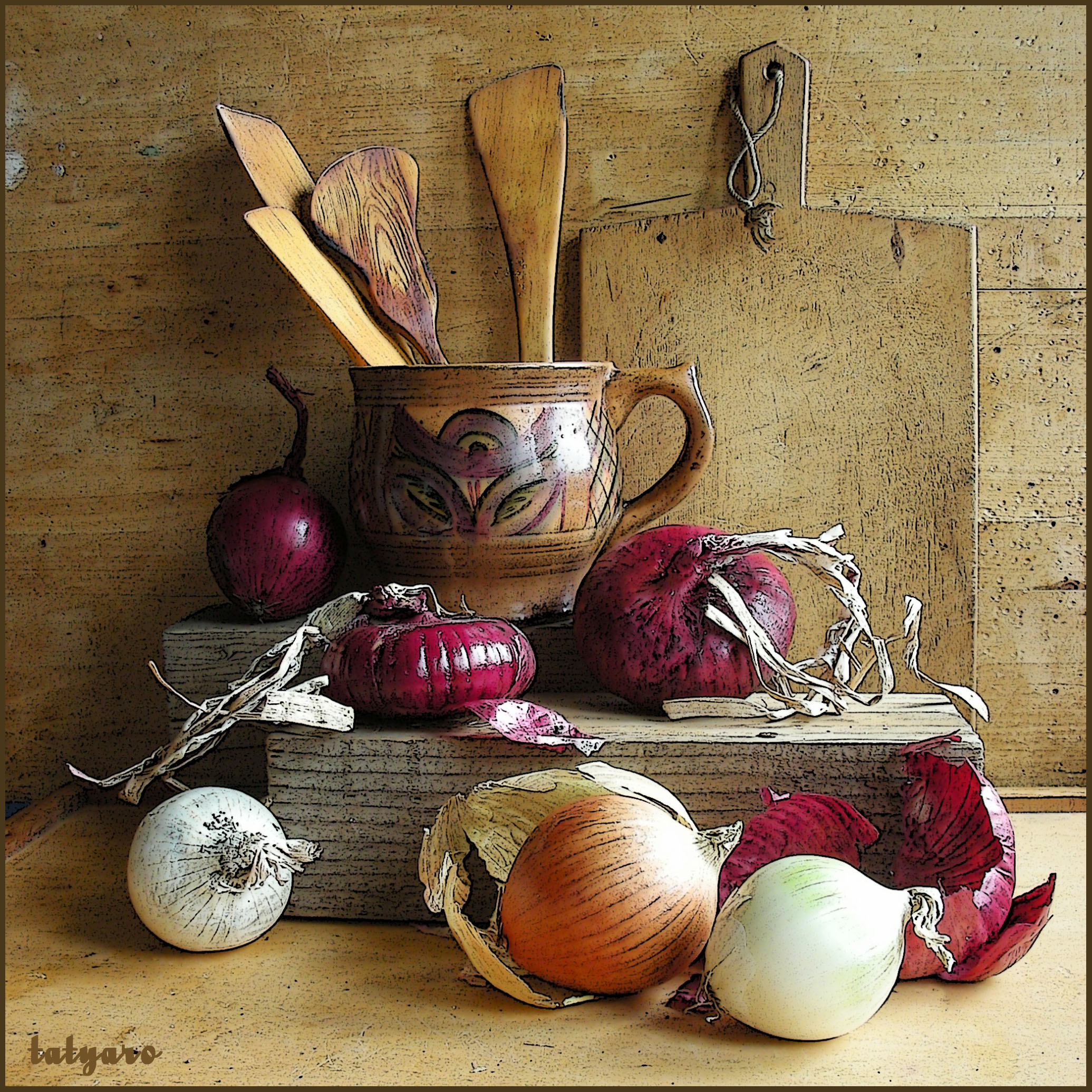 Например, в фотошопе натюрморт можно состарить, или подложить под изображение какую-нибудь текстуру. Мы хотим предложить вам примерно такую схему постобработки натюрморта: