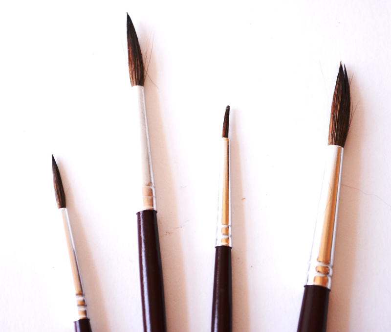 Кисти из хека должны быть самыми лучшими из тех, что вы можете найти – из чистого козьего волоса, правильно переплетенного и склеенного, чтобы щетина не выпадала.