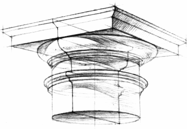 Приступая к рисунку, можно начать либо с базы капители, либо с верхнего основания.