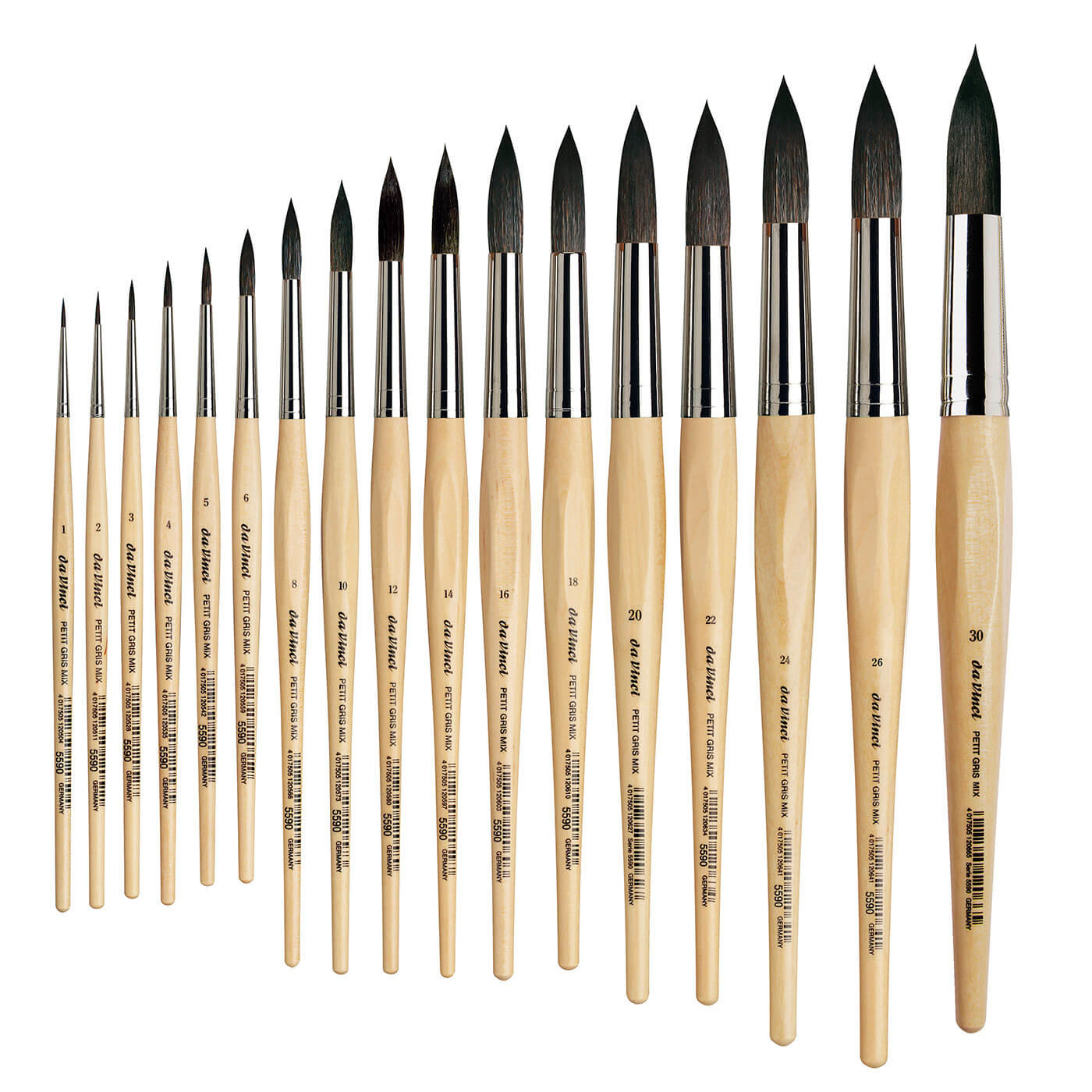 Маленькая круглая кисть из синтетического волоса предназначена для рисования мелких точных деталей.