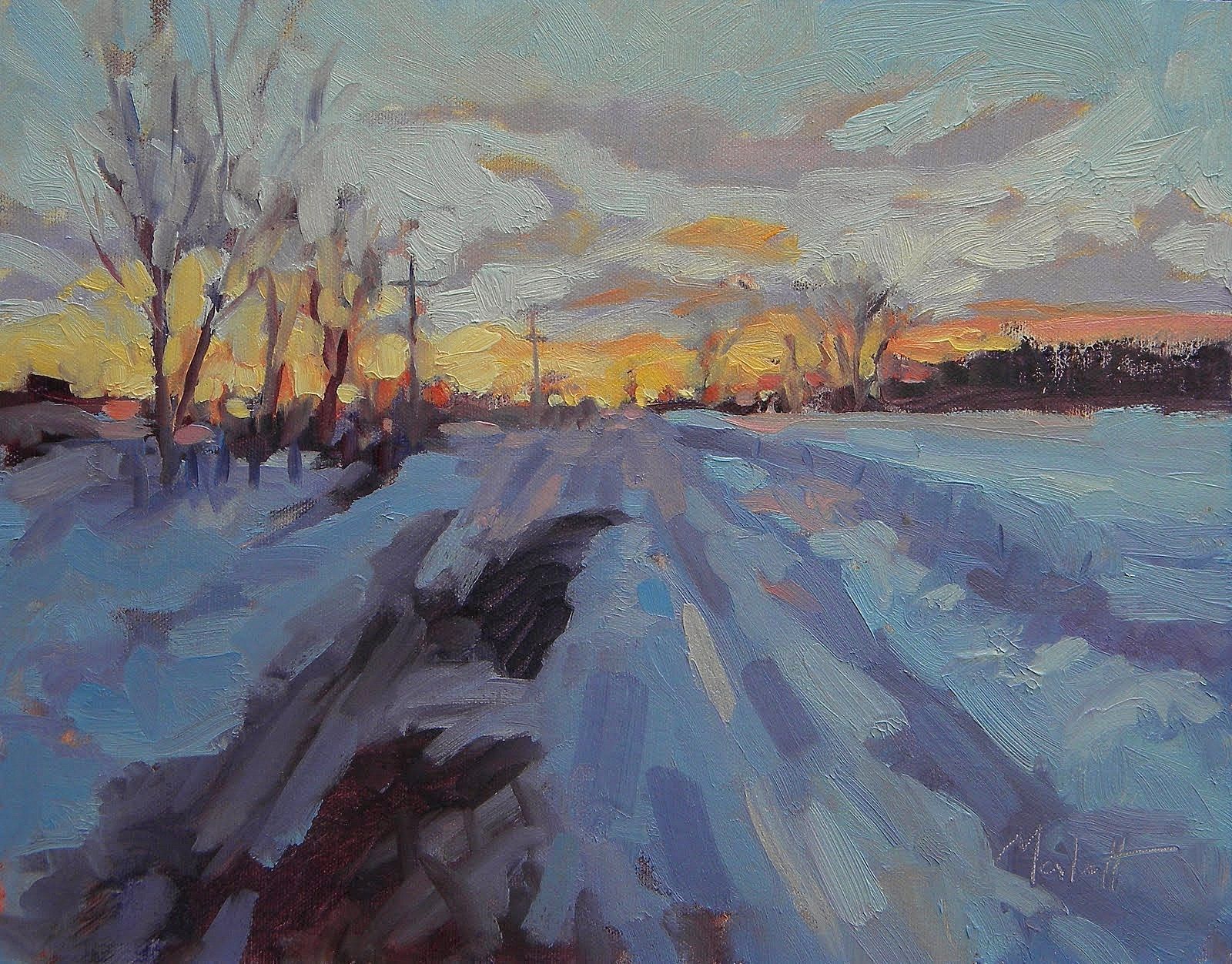 Начать с. Обратите внимание, что солнечный свет падает справа. Это не закат, но он довольно низко над горизонтом. Мы можем сказать, что из-за длинных теней этот угол делает перпендикуляр на берегу реки самым темным значением.И река, следующая самая темная. Вода обычно лишь немного темнее неба, так как на нее попадает прямой свет. Но в этом случае сумма низкая, а значения вокруг воды очень светлые, что в совокупности дает нам темный оттенок рек. Плоскость, наклоненная к земле, является следующим самым темным значением, за которым следует дальний фон, что соответствует тому, что мы узнали из теории равнин. Однако участки снега на дальних наклонных плоскостях поднимают его части и ценность. Эти пятна на самом деле светлее, чем небо, которое является следующим самым легким самолетом.Наконец, самое светлое значение — это передний план и заснеженные перпендикулярные деревья. Поэтому, наблюдая за сценой для оценки видимых плоскостей, обращайте внимание на очень светлые или, возможно, белые элементы.