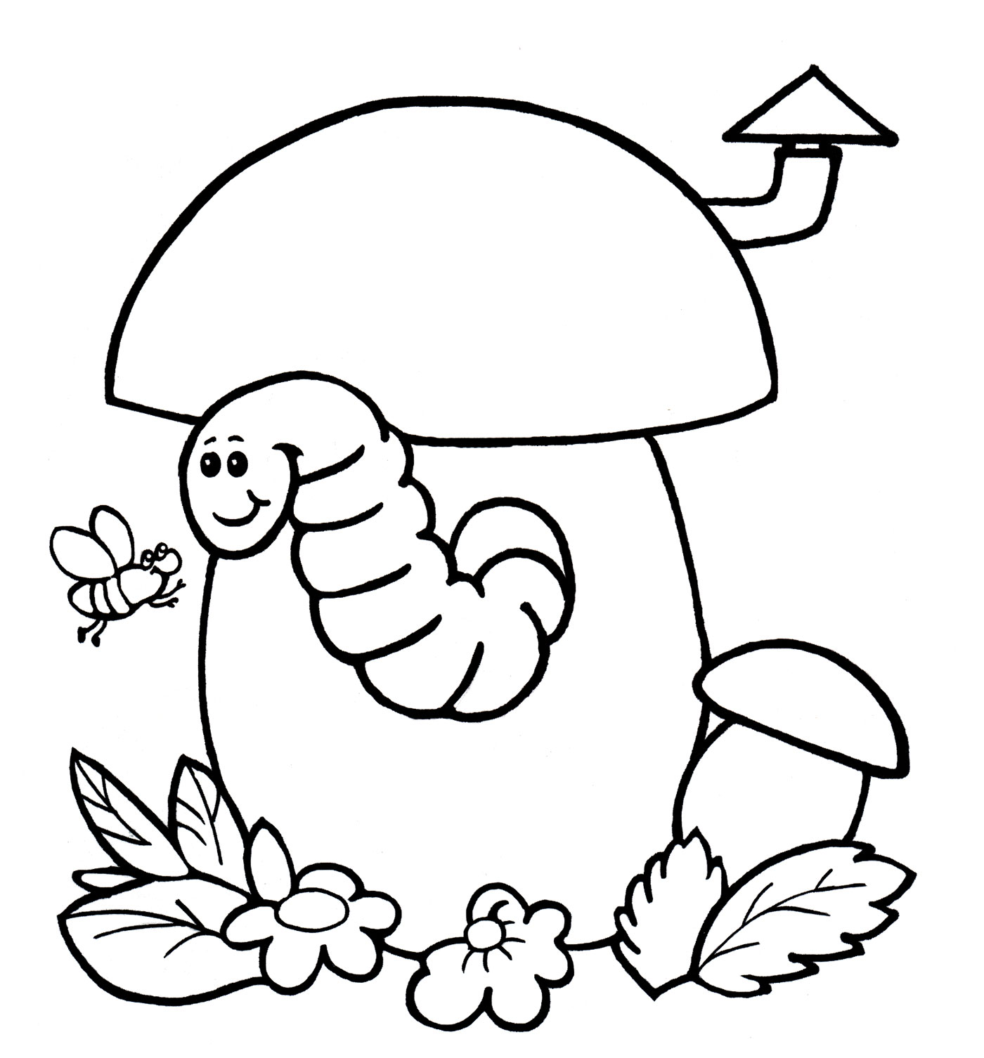 3.Также уделим внимаем второму грибочку. Прорисовываем контур шляпки и ножки, добавим мелкие штрихи. Несколькими линиями создадим основание земли.
