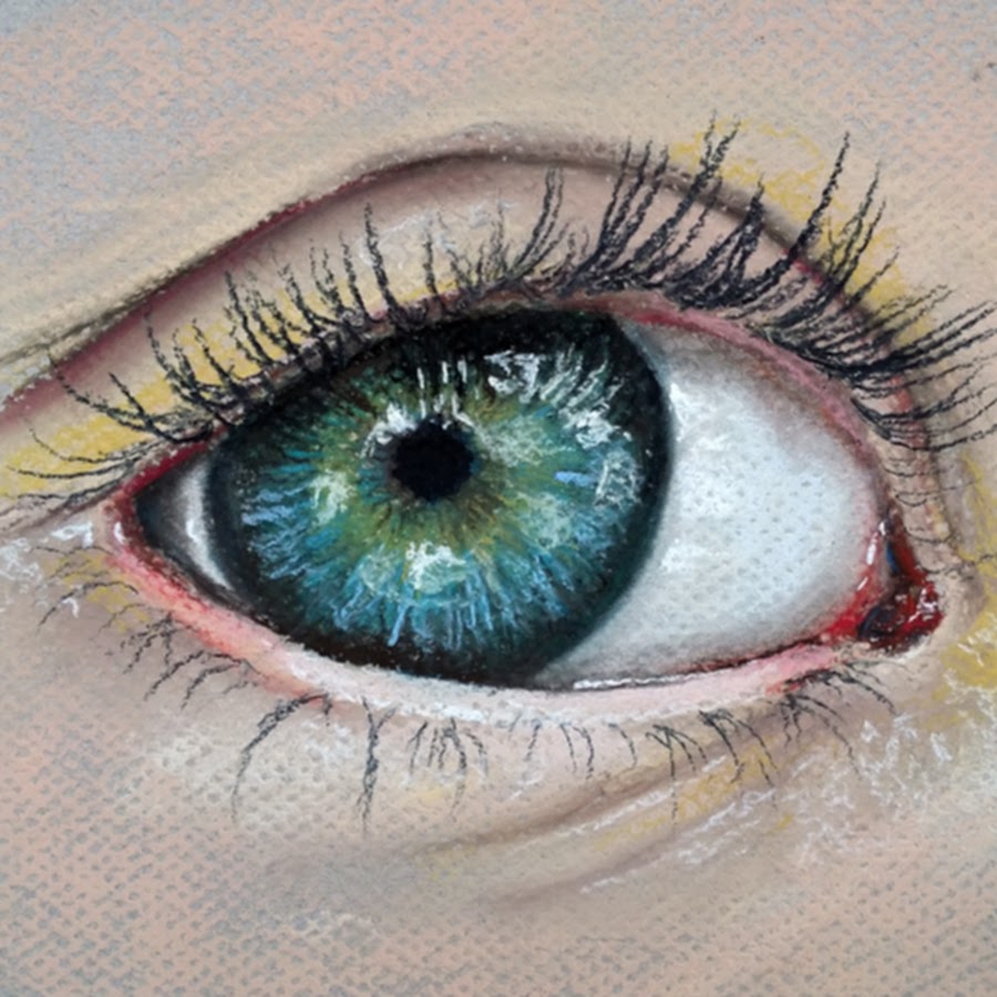 Если это необходимо усильте тон где вы его нанесли. По желанию вы можете нарисовать в объеме верхнее веко которое закрывает глаз. Это придаст нашему глазу еще больше объема и реалистичности. Обратите внимание на строение радужной оболочки. Прорисуйте ее, это будет только плюсом для вашего глаза.
