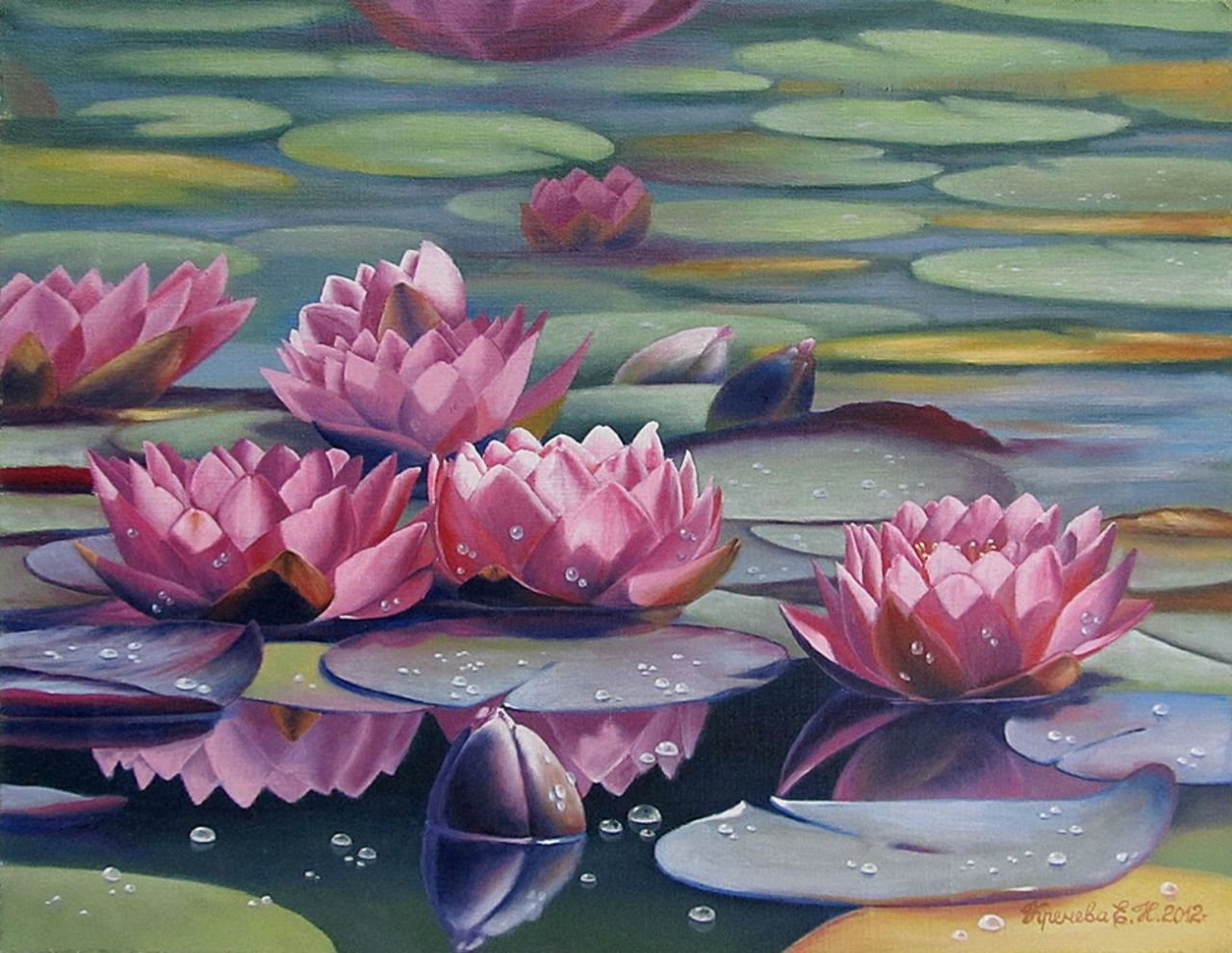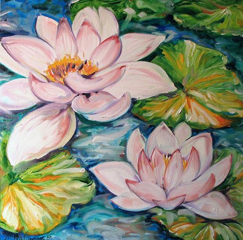 Как нарисовать кувшинки Моне акриловой краской, шаг за шагом