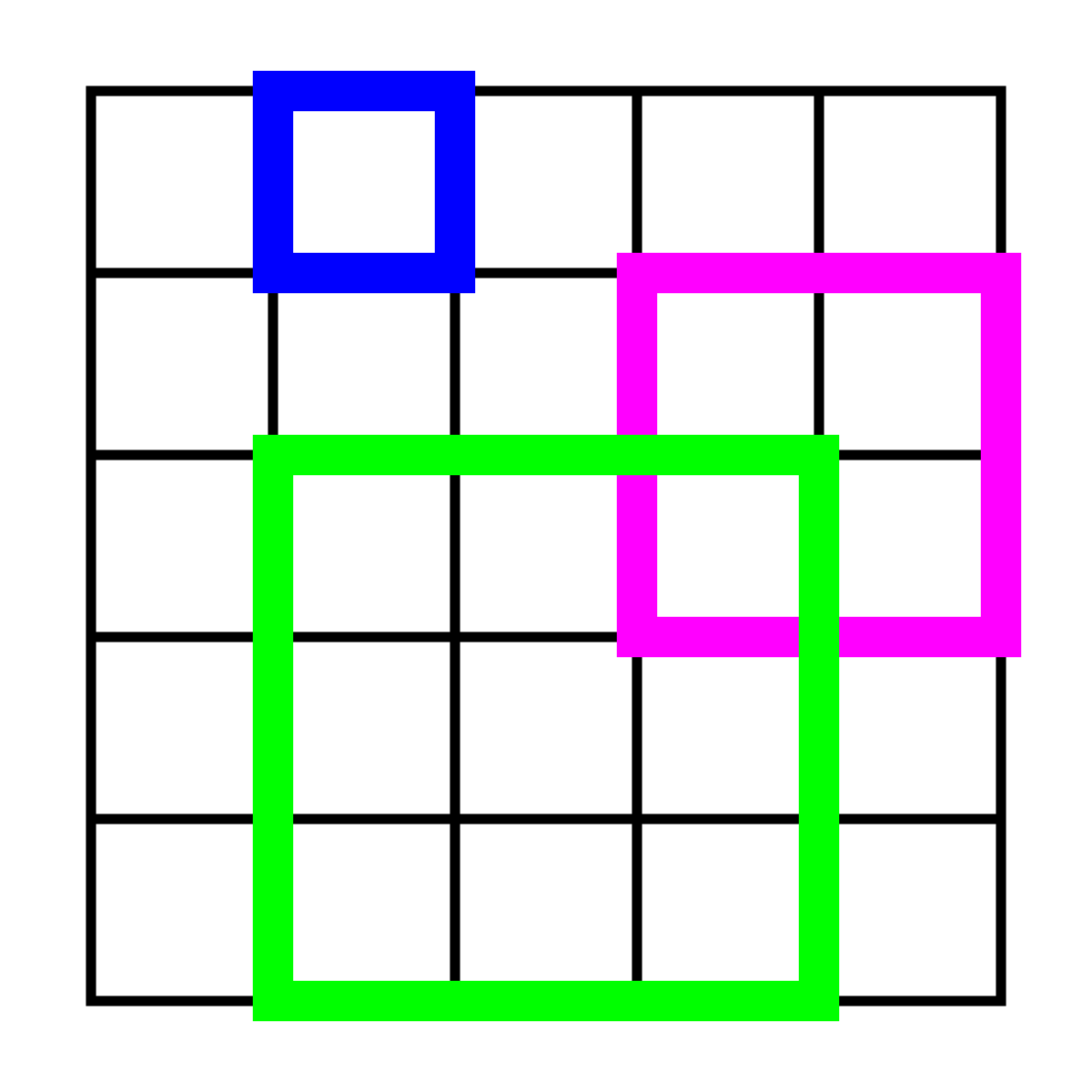 Ниже я сделал небольшую анимацию того, как это работает. Хорошее размещение квадрата отображается зеленым цветом, конфликты позиций - красным.