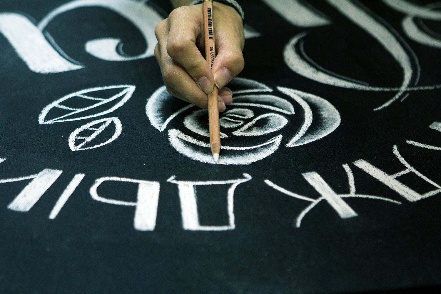 В английском языке существует слово «letterer», именно таким образом называют себя некоторые специалисты по леттерингу. Более того, уже в рамках леттеринга можно выделить специалистов, занимающихся определенным видом ремесла — художники, занимающиеся оформлением вывесок («sign painting»), гравировщики по камню («stone carving»), специалисты по леттерингу мелом, кистью, т.п. Как видите, по сути одна профессия подразумевает различных специалистов, работающих конкретно с тем или иным материалом, техникой, а объединяет их всех создание уникальных шрифтовых композиций. Одна из задач нашего курса — дать студентам представление о широте восприятия данной профессии.