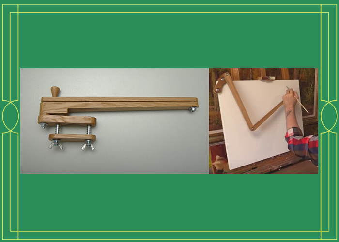 Муштабель или батожок — это длинное приспособление в виде палочки или специальная конструкция, которая поддерживает ведущую руку во время работы с мелкими деталями картины или черчения на больших форматах. Способствует тому, чтобы рука не напрягалась, не дрожала при тщательной отрисовке.