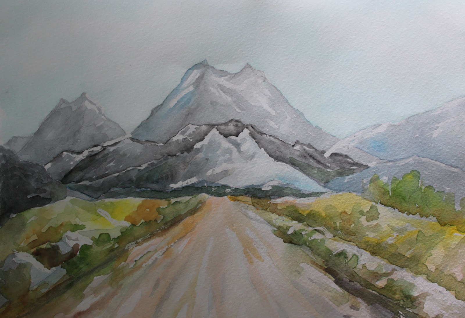 - 3. Смешайте средний серый цвет на своей палитре и используйте этот цвет, чтобы нарисовать горы.