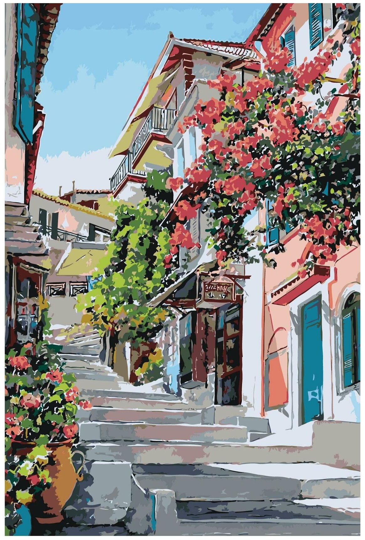 5. Двигаясь далее, нам необходимо работать над прорисовкой всех деталей композиции. После чего, обобщая работу, необходимо добиться цветовой гармонии. Для этого, продолжая работать с деталями, мы будем чередовать цвета между ними. Убедившись, что в работе отсутствуют ошибки в распределении тональных пятен (светлые пятна остаются светлыми, а тёмные тёмными) можем поставить точку.
