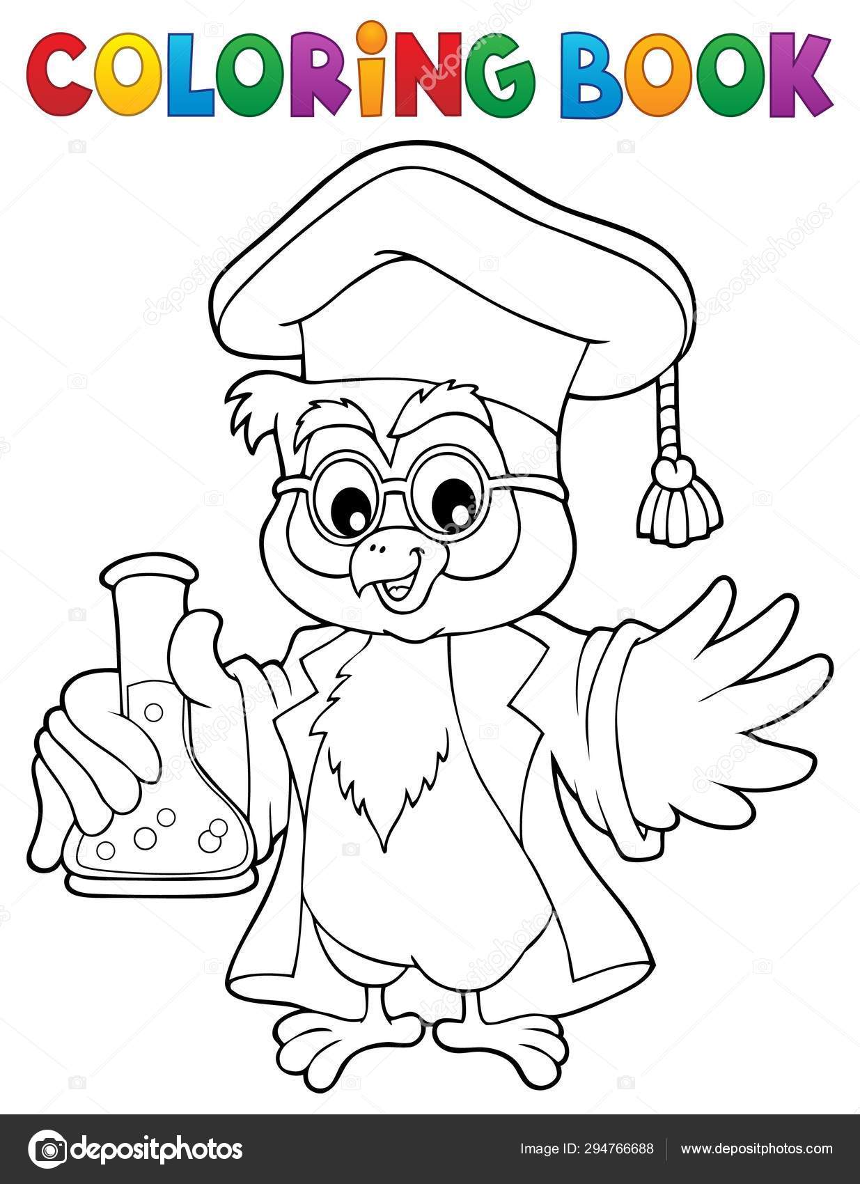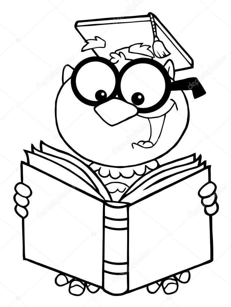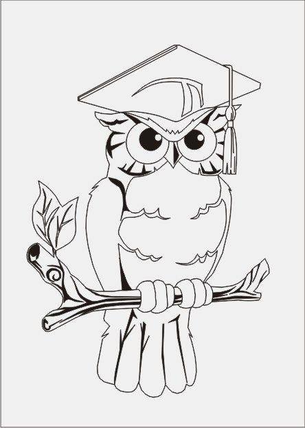 Раскраска сова учитель: Раскраска Сова-учитель в шапочке выпускника со звонком