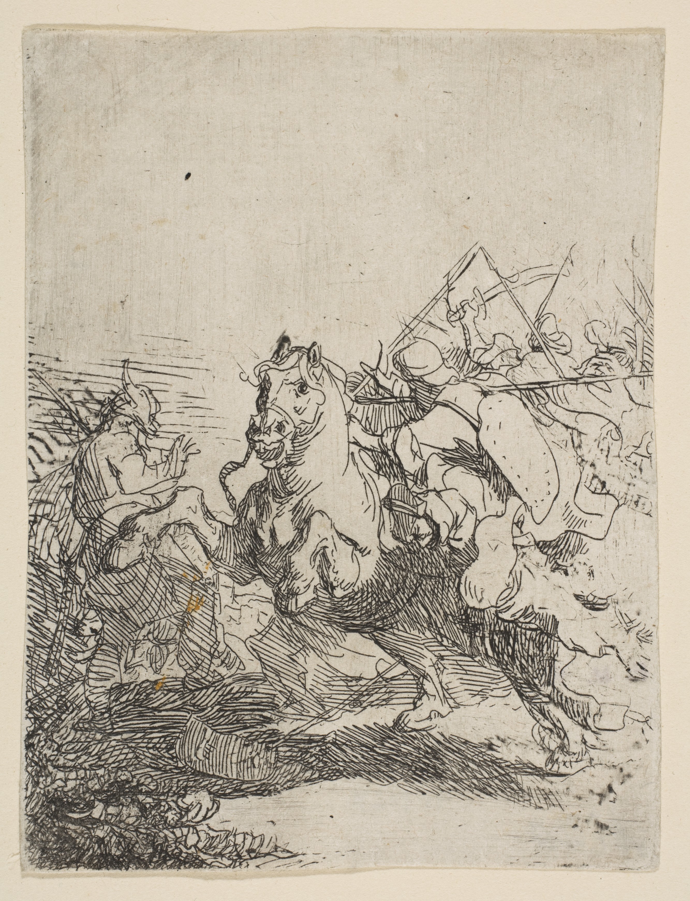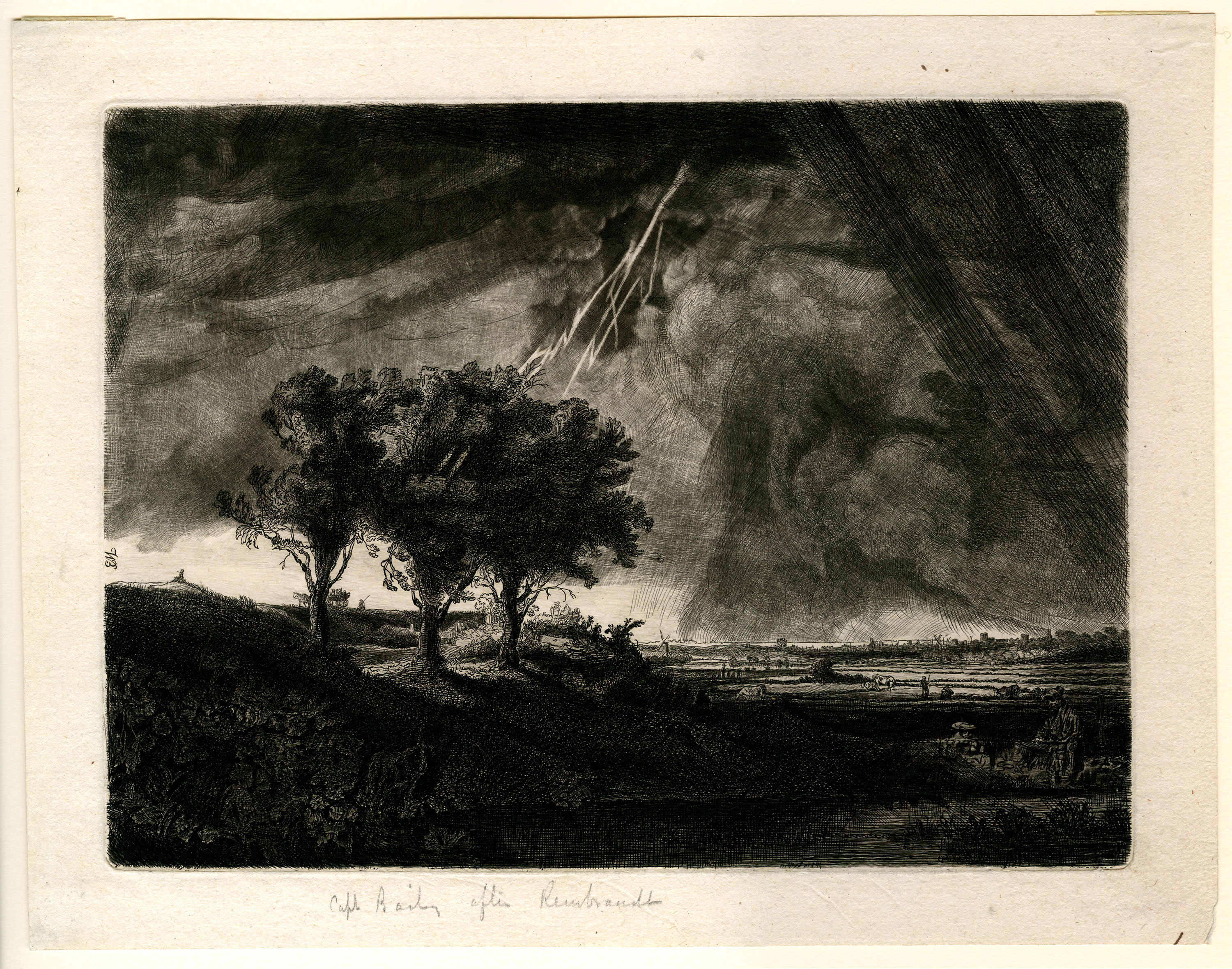 Офорт. 53х40,5. В середине нижнего поля гравированные подпись и дата: Rembrandt f. cumprivil. 1633. Оттиск рубежа XVIII-XIX веков (?). Оригинальная доска находится в частном собрании в США.