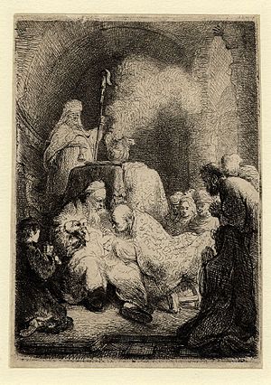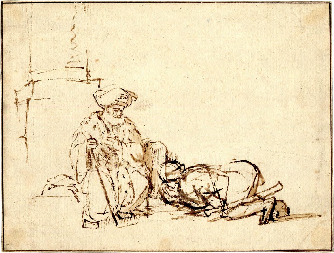 Влияние иудаизма на жизнь и творчество Рембрандта — замечательная и многогранная история. Рембрандт родился в христианской семье (его отец был голландским кальвинистом, а мать — католичкой) и никогда официально не присоединялся к какой-либо церкви, однако он был проницательным исследователем Библии.Рембрандт обратился к еврейским теологам за информацией о своих изображениях ветхозаветных образов. Он также нанимал моделей из еврейской общины и получал заказы от еврейских покровителей. Рембрандт смело порвал с устоявшимися способами изображения ветхозаветных историй, добавив эмоциональной и психологической глубины своим персонажам с помощью выразительных лиц, драматического языка тела и смелого использования тени и света. Вневременность эмоций, переданных в офортах Рембрандта, позволяет его работам находить отклик у нас сегодня так же глубоко, как и у его современников в 17 веке.