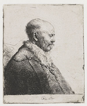 «Портрет Яна Лутмы» (1656)Размеры офортов изменяются от нескольких сантиметров — офорт «Голова кричащего мужчины в меховой шапке» имеет размеры 36 x 29 мм.