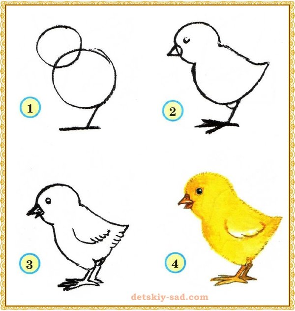 Рисуем цыпленка поэтапно: Как нарисовать цыпленка ребенку