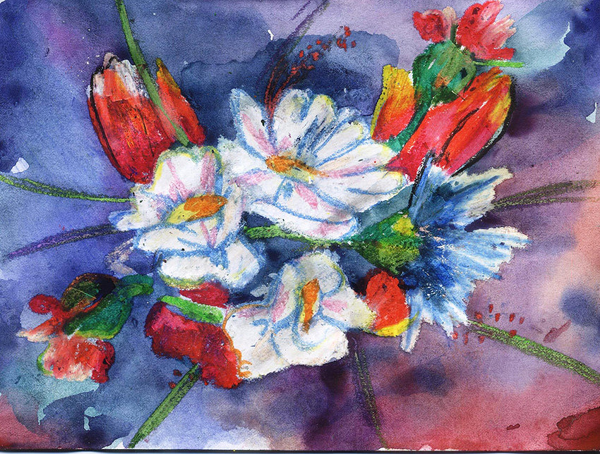 - Рисования акварелью и восковыми мелками для детей в детском саду