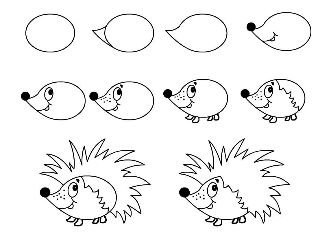 Это своего рода друг. Он как бы под углом, когда он встал на лапы и повернул голову к нам. Но кроме этого, его тела сбоку Я сделал этого маленького свернутого парня, которого мы уже сделали сбоку от тебя, спящего парня, того, на которого он смотрит вверх. Если вы не видите, я думаю, на этой фотографии было много травы здесь внизу, поэтому я просто взял информацию из других фотографий, чтобы оценить, как будут выглядеть его лапы. А затем вы можете начать экспериментировать с более стилизованными версиями. Так, например, этот парень, которого я только что нарисовал.Я просто нарисовал зигзаги. Хм, как только у вас появятся эти самые базовые функции, такие как ухо, глаза, нос, рот, вы действительно сможете делать много разных вещей с небольшим подтекстом, что есть некоторые шипы, ммм, а у вас все еще нет выглядел как ёжик. Можно получиться действительно абстрактным, и все равно будет выглядеть как ёжик. Вот когда с очень простыми маленькими ножками, маленькие мультяшные ножки останавливаются спереди и сзади. Пауза. Этот парень, эти парни на самом деле такие же, за исключением глаз и ступней.Я продублировал этого парня, перевернул его, и вы могли увидеть, как они на самом деле выглядят очень, очень по-разному. Я просто поставил на это маленькую букву I. Я поставил на него глаза более реалистичного размера. А потом я сделал ему маленькие лапки. Любое стоячее положение. Оба они стояли прямо. Очевидно, ежи на самом деле не собираются этого делать, но это ключевой способ, Этот. Я попытался сделать его похожим на стилизованного сидящего ёжика, но, думаю, в итоге получилось просто свернутым ёжиком. Так что мне нужно попрактиковаться в этом еще.Может, у меня здесь нет шипов. Итак, знаете что? Я могу сделать это с помощью маски слоя, так что я возьму черный, и я просто возьму туда свои чернила и просто закрою, и это не стирание, а обнаружение. Так что да, там пол выглядит немного больше. Если вы не знаете, что такое маска слоя, он выглядит немного больше, как будто он сидит. Если вы просто, эм, нажмете на слой и маску, этот белый слой появится, связанный со слоем, на котором есть маска. И все, что вы рисуете на этом слое, имеет черный цвет.Это будет похоже на гонки, но на самом деле это не так. Это просто маска слоя, которая как бы закрывает то, что у вас есть под этой маской. Так что вы можете практиковать стилизованные образы. Я хотел бы сначала попрактиковаться, основываясь на фотографиях, чтобы получить общее представление о том, где в маленьком рту находятся уши, нос и глаза. Я вижу много стилизованных, у которых рот здесь внизу, а не здесь, как морда собаки, ммм, но, наверное, лучше начать, зная, где именно рот идет в первую очередь.8. Типы иллюстраций: я хотел показать вам, ммм, несколько разных стилей иллюстрации ежей. Я просто набрал реалистичные иллюстрации ежика в изображения Google, и вы можете увидеть несколько действительно хороших иллюстраций. Некоторые из них простые, а некоторые — карандашные. Другой способ взглянуть на разные типы иллюстраций — это просто уточнить стиль иллюстрации. Я только что набрала симпатичную иллюстрацию ёжика, и есть действительно симпатичные. Эм, на мой взгляд, этот парень выглядит вполне реалистично, но также очень мило, и вы можете видеть, что вам действительно не нужно показывать тонну деталей, чтобы он выглядел как еж.Просто нужна эта об