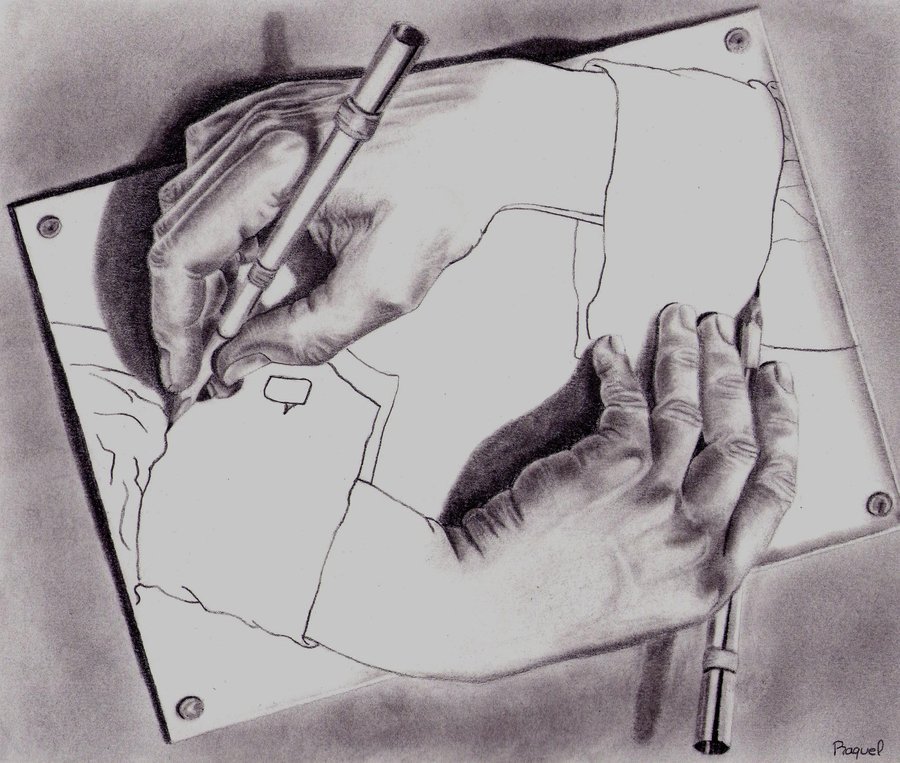 “Рисующие руки” – на которой две руки рисуют друг друга.