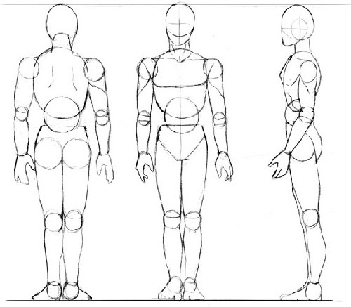 Первый подсчет голов всегда начинается сверху — Пример: рисование среднего мужчины начинается с вершины 8 голов, в то время как рисование детей начинается с вершины 5-6 голов.