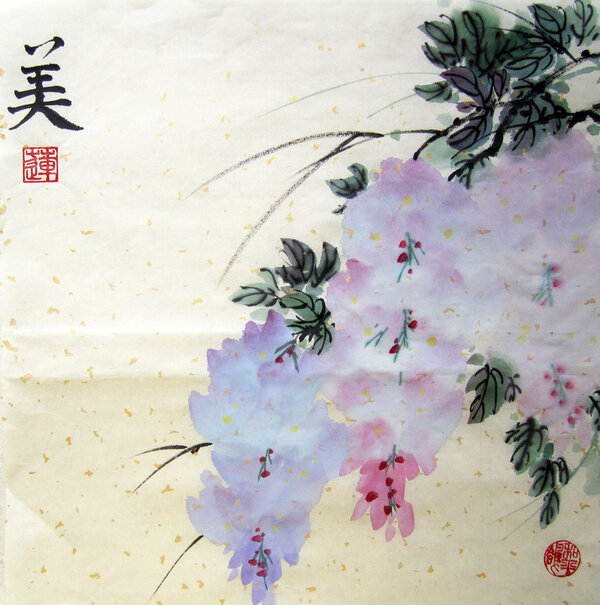Китайская живопись имеет, по крайней мере, пяти тысячелетнюю историю. На протяжении всей истории китайские художники использовали в своем творчестве светло-розовые, золотистые и черные цвета.
