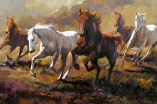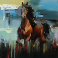 Стоит поговорить и о жокеях. Они изображены расплывчато, их силуэты наклонены вперед, когда они заставляют своих лошадей двигаться быстрее . Все они носят типичную одежду, солнцезащитные очки, за которыми скрыты лица, и защитные шлемы.Человек на ведущей лошади раскрашен более отчетливо. В руке он держит хлыст и, по всей видимости, им пришпорил лошадь. Из цветов художник выбрал преимущественно коричневый, синий, красный, зеленый и желтый оттенки. Каждое изображение лаконично, но представлено явно. В целом картина вполне конкретная и будет оценена знатоками скачек или любители животных оценят ее в должной степени. Посетите галерею художника, чтобы увидеть больше картин с лошадьми, которые украсят ваш дом!