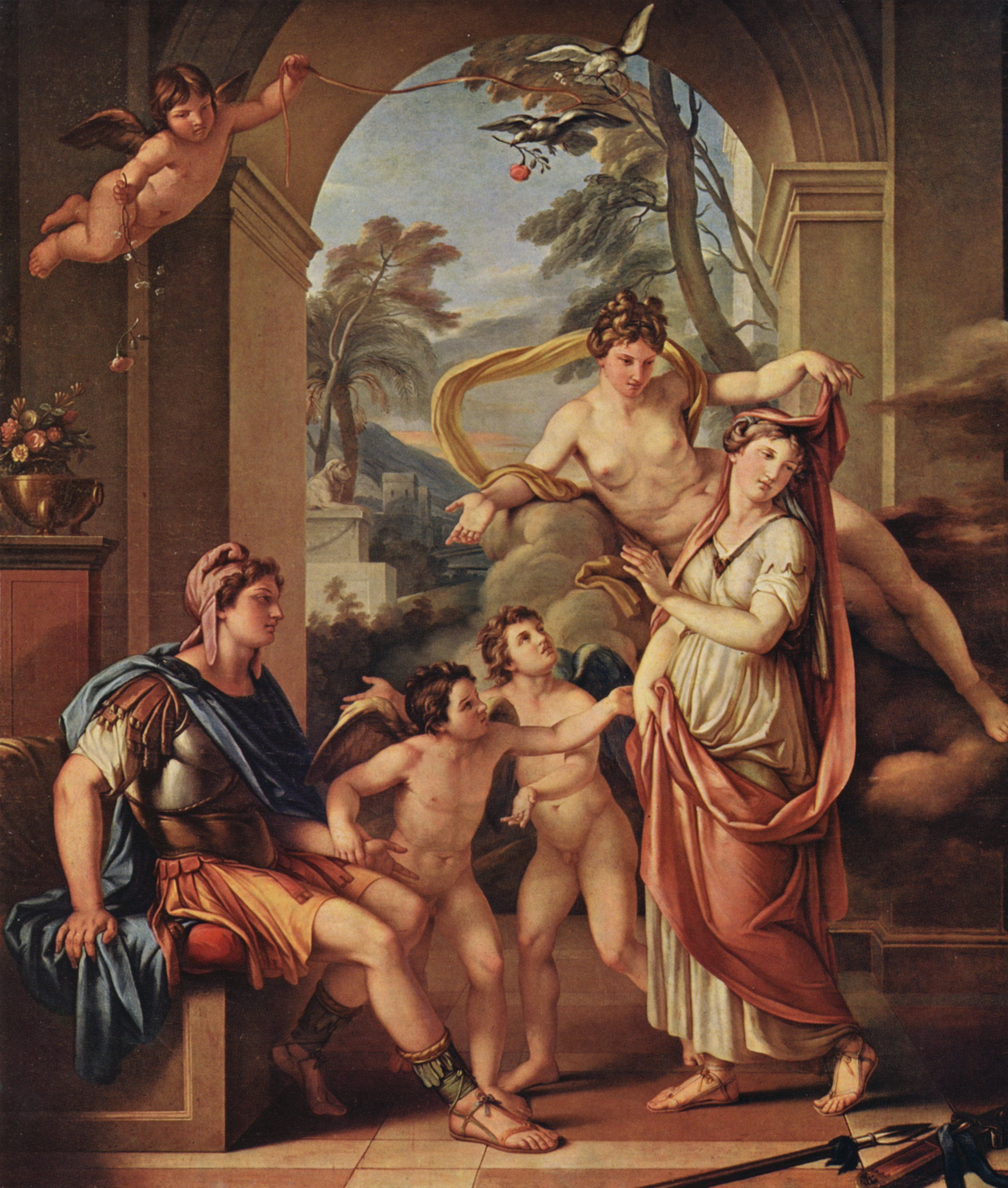 Принимая заказ на роспись подвески к картине от Давида, Винсент рисковал подвергнуться вражде первого, которая безвозвратно ранила амбиции несчастного Пейрона. Ринальдо и Армида [13] были закончены как раз к Салону 1787 , и, поскольку загадочная болезнь Дэвида задержала выставку Пэрис и Хелен до 1789 года, его единственной записью был Сократ (Нью-Йорк, Метрополитен-музей), предмет, с которым картину Винсента нельзя сравнивать и которую Дэвид создал с мыслью об окончательном унижении Пейрона.