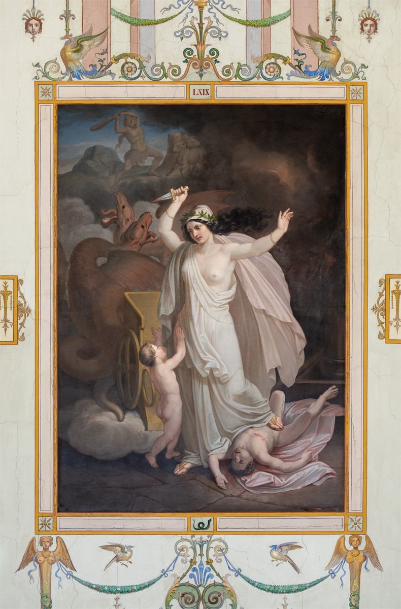 вообще. Иначе зачем бы девушке на переднем плане рыдать в объятиях другого, если бы она была выбрана моделью? Таким образом, в остальном следуя повествованию, художник исказил историю, представив человеческую реальность печали и разочарования, хотя и поверхностную, в сцену, которая в противном случае была бы лишена глубоких чувств, возможно, проводя параллель с материнским опустошением, изображенным Давидом.