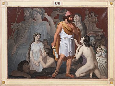 [9] Это соединение было впервые установлено Анитой Брукнер в Жак-Луи Давид , Лондон, 1980, с.65. Жан-Пьер Кузен в своей записи о картине в каталоге выставки de David à Delacroix , 1975-75, pp.662-663, отмечает также реакцию молодого художника на картину Гверчино и Гвидо Рени. .