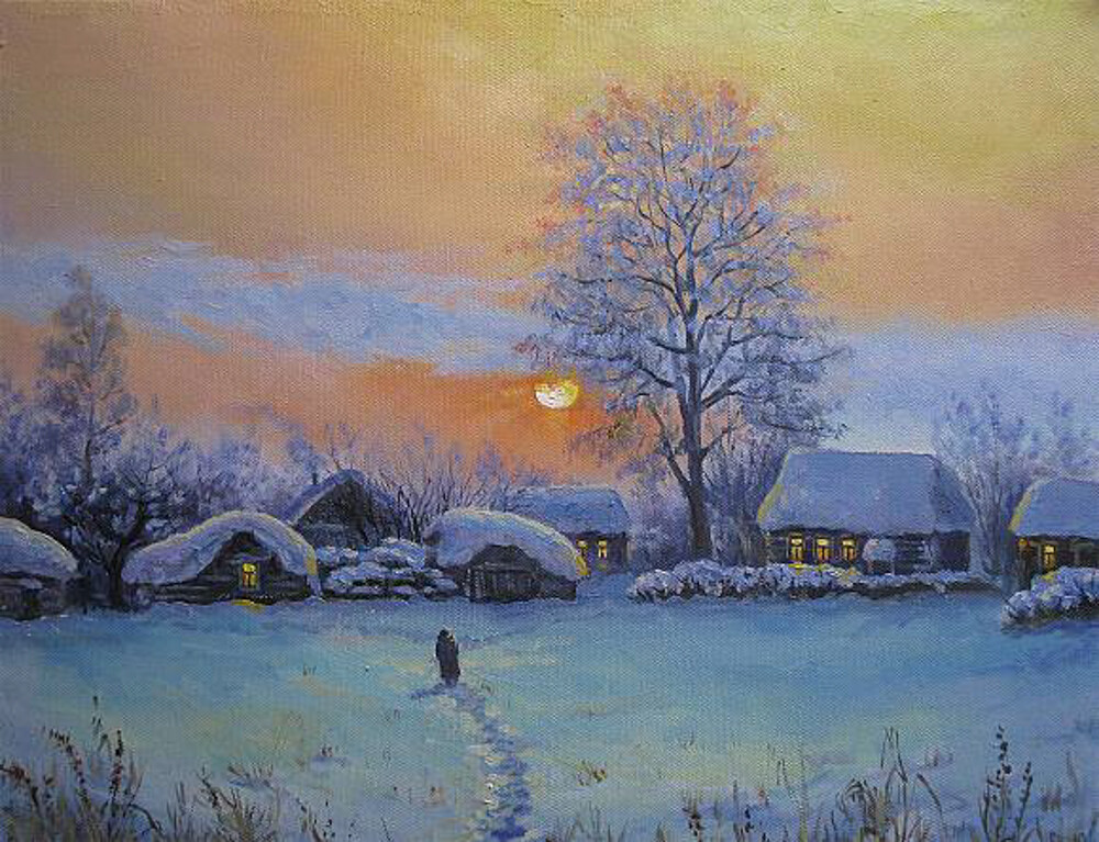 Как нарисовать зимний вечер поэтапно карандашом. Рисуем зимний пейзаж