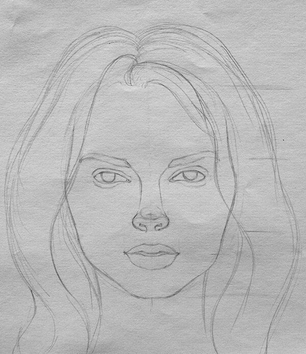 Когда лист просохнет полностью, можно делать набросок будущего портрета девушки.